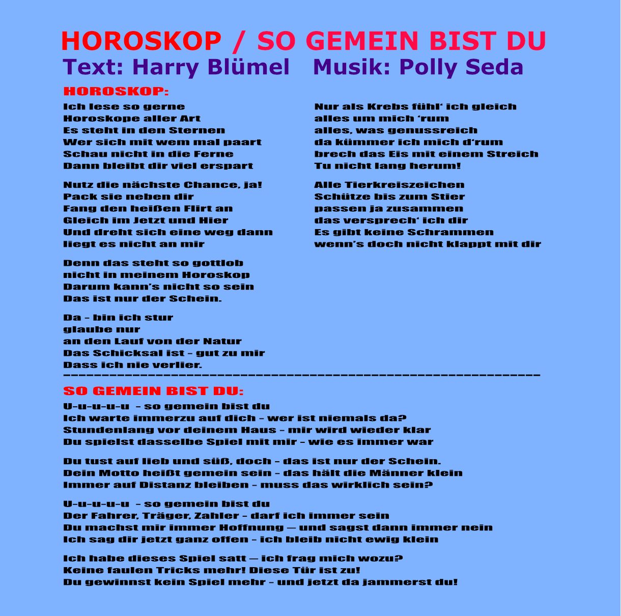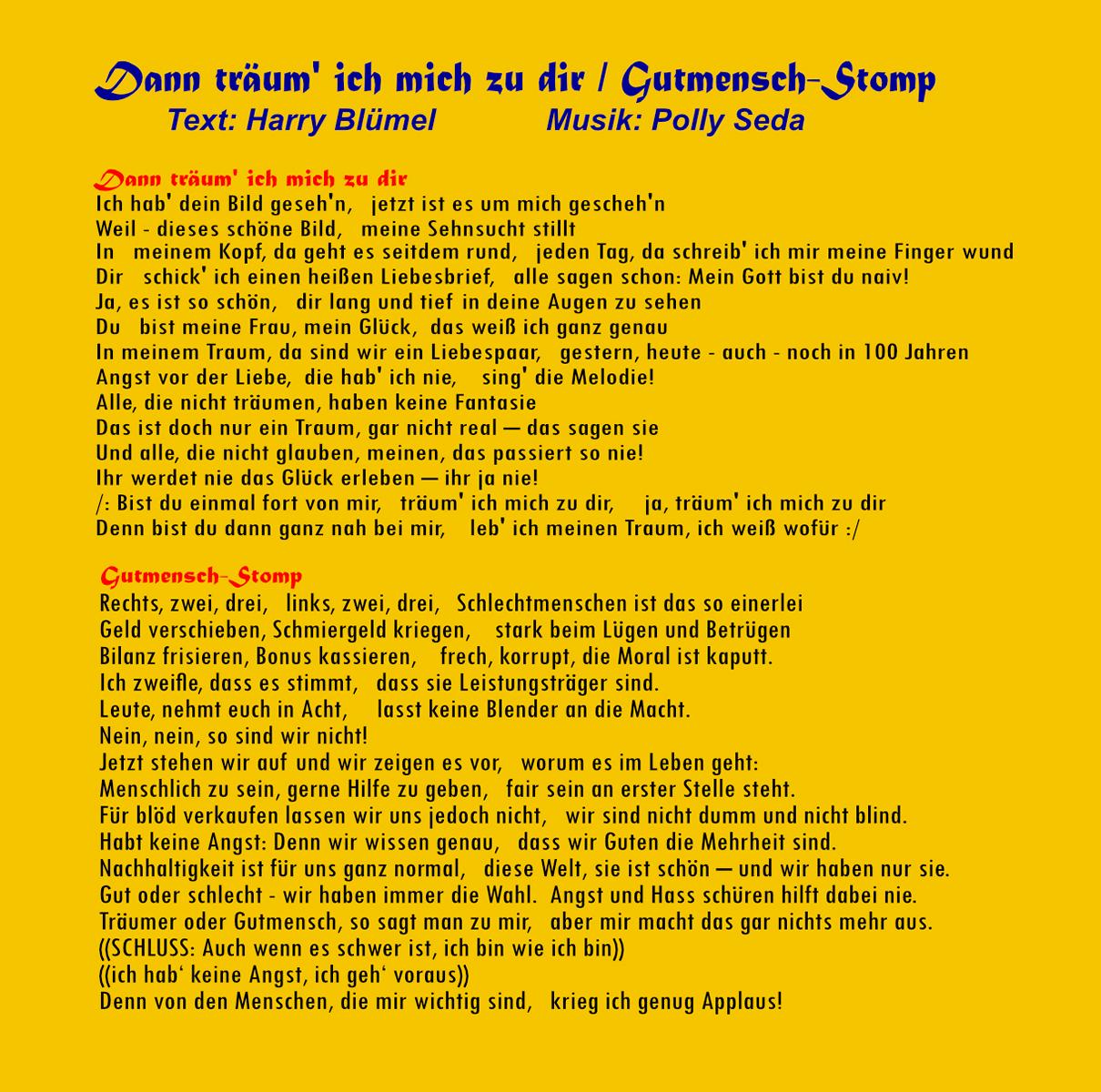Text & Gesang & Produktion: Harry Blümel;