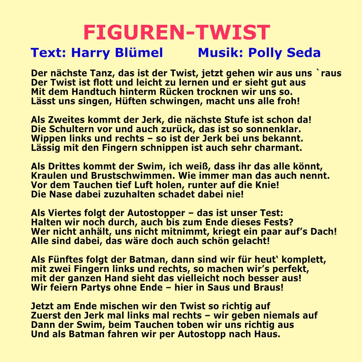 im Text werden die Bewegungen zum Twist gesungen, frei nach Pulp-Fiction-Twist mit John Travolta und Uma Thurman