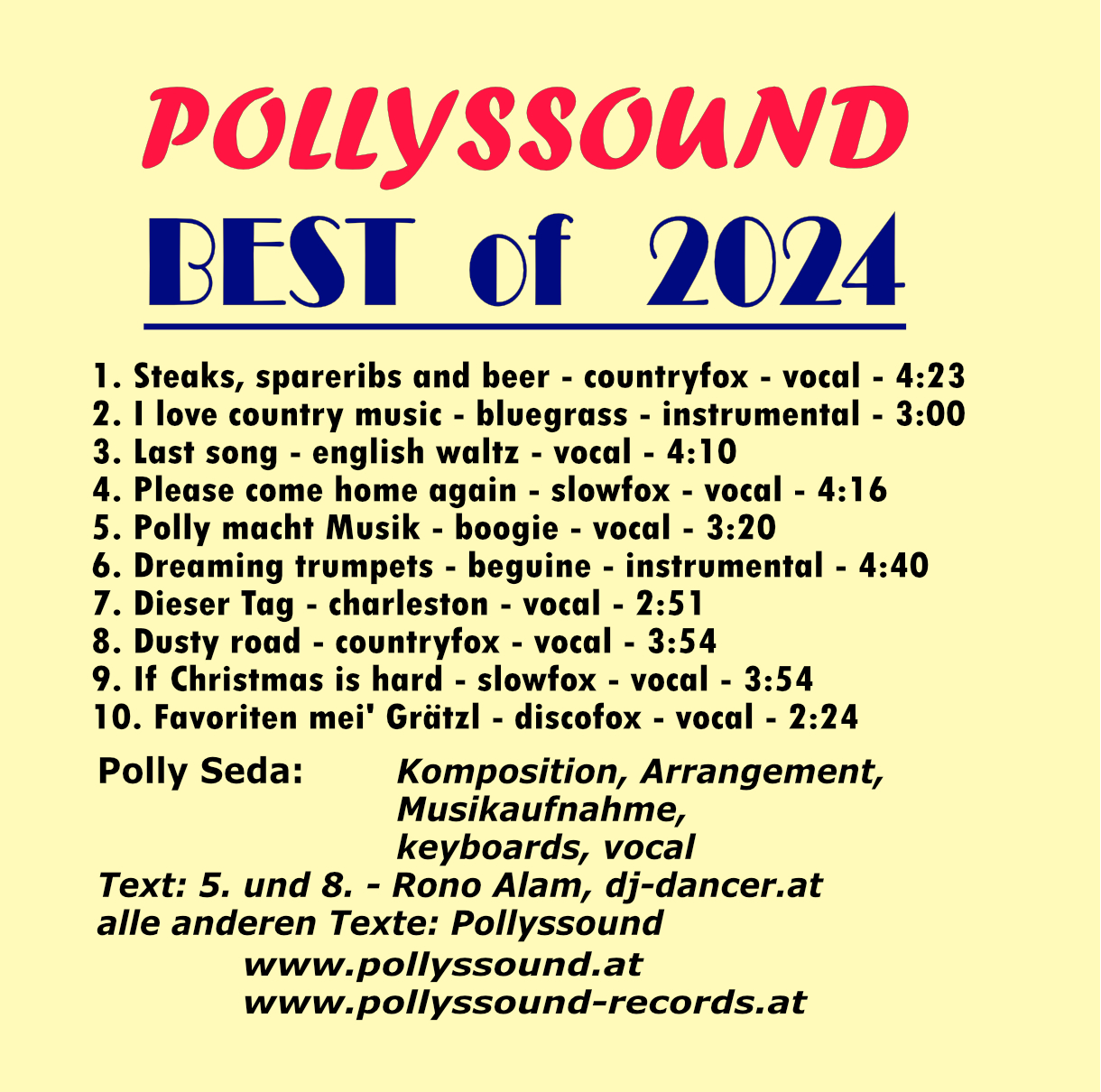 CD-Album "Best of 2024", 10 Eigenkompositionen von Polly, 3.2025