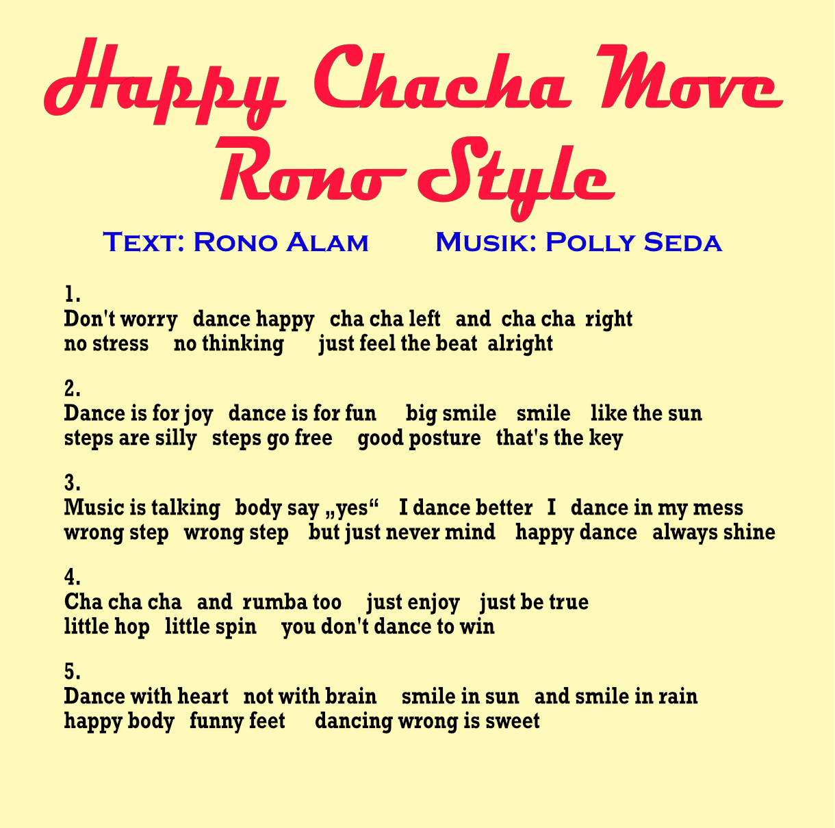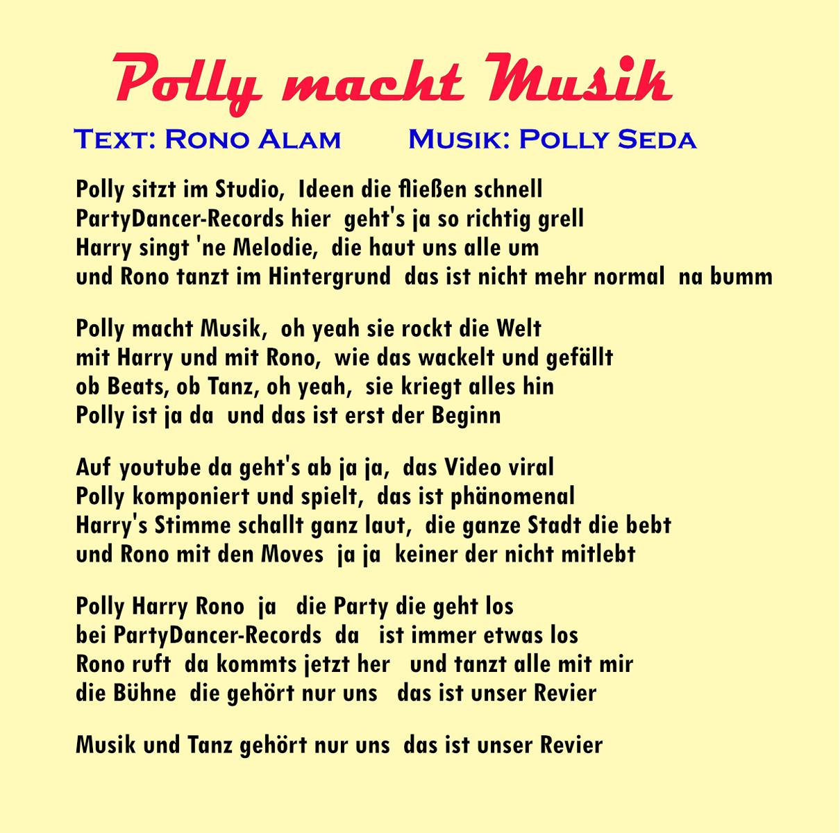 Text: bei 5. und 8. von Rono Alam, alle anderen Texte bei Vocal-Songs von Polly/Pollyssound